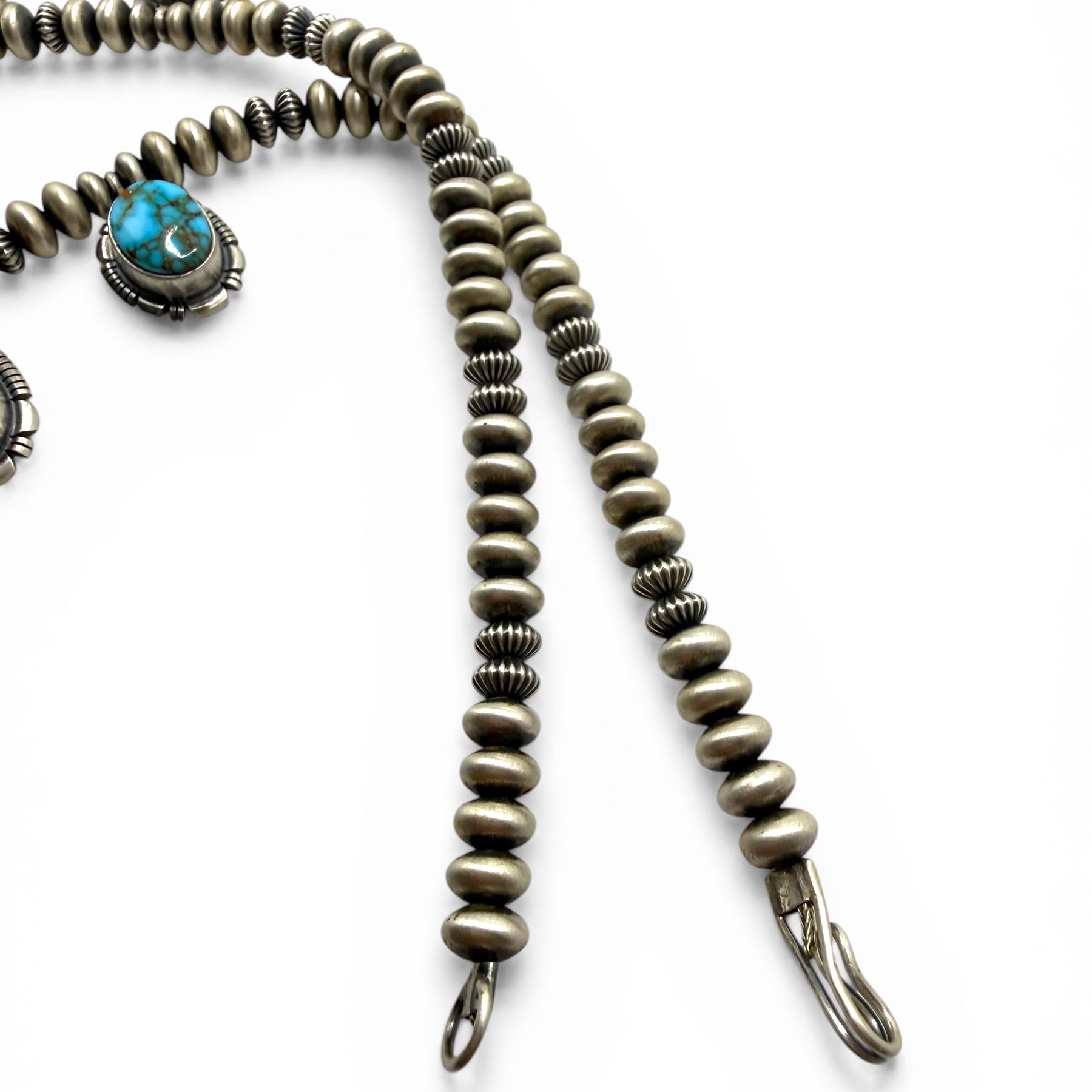 Handmade Navajo Pearl Spider Webbed Turquoise Necklace and Earrings Set