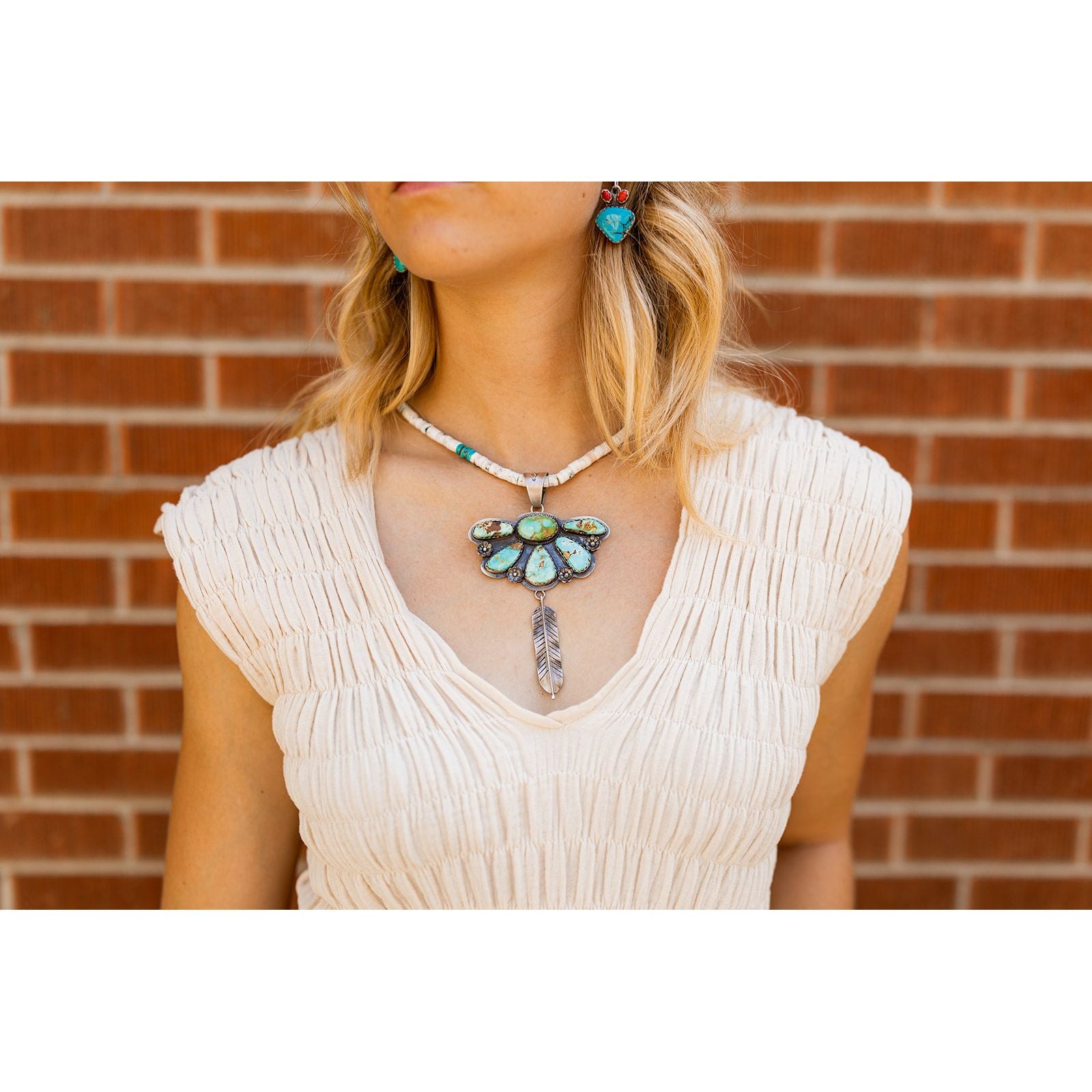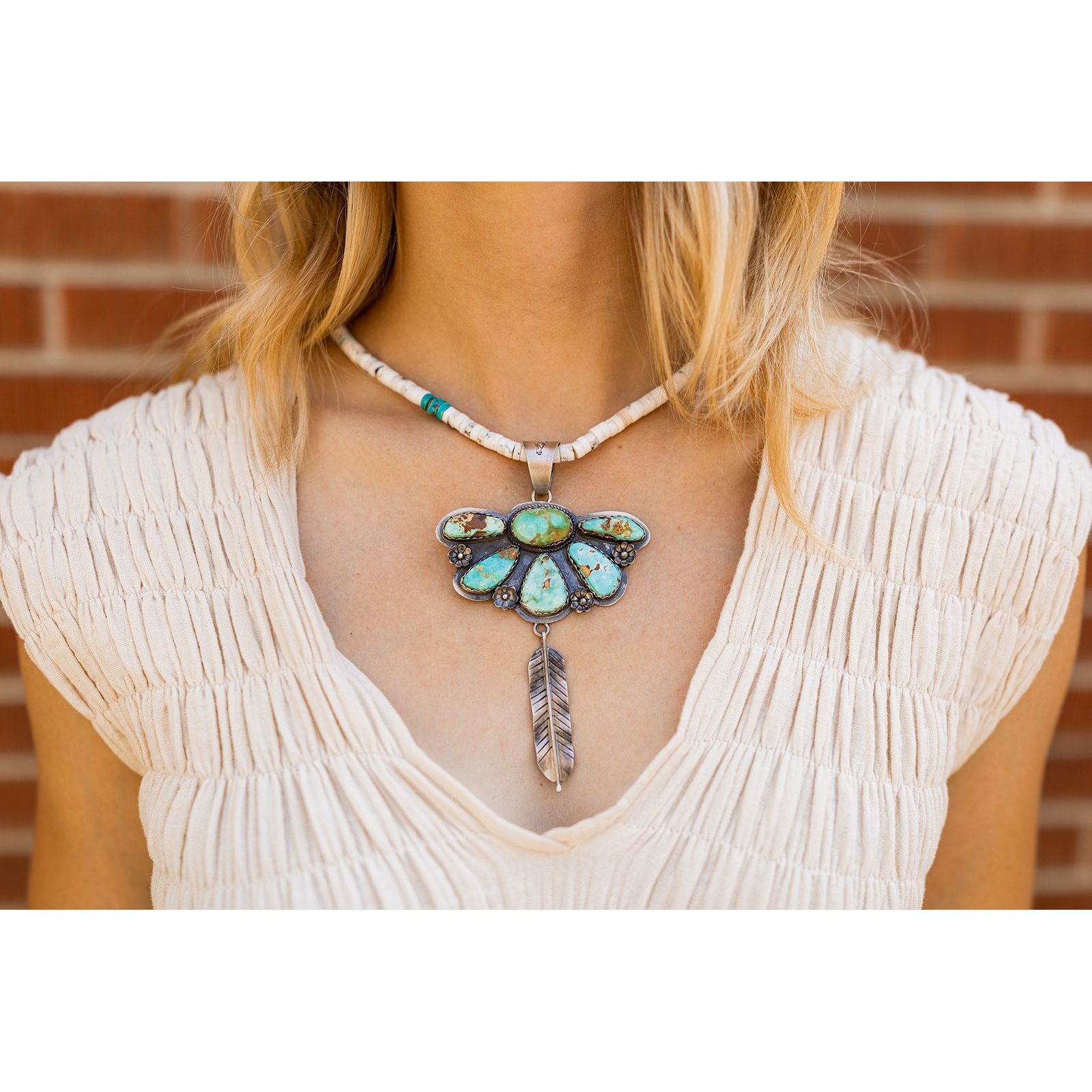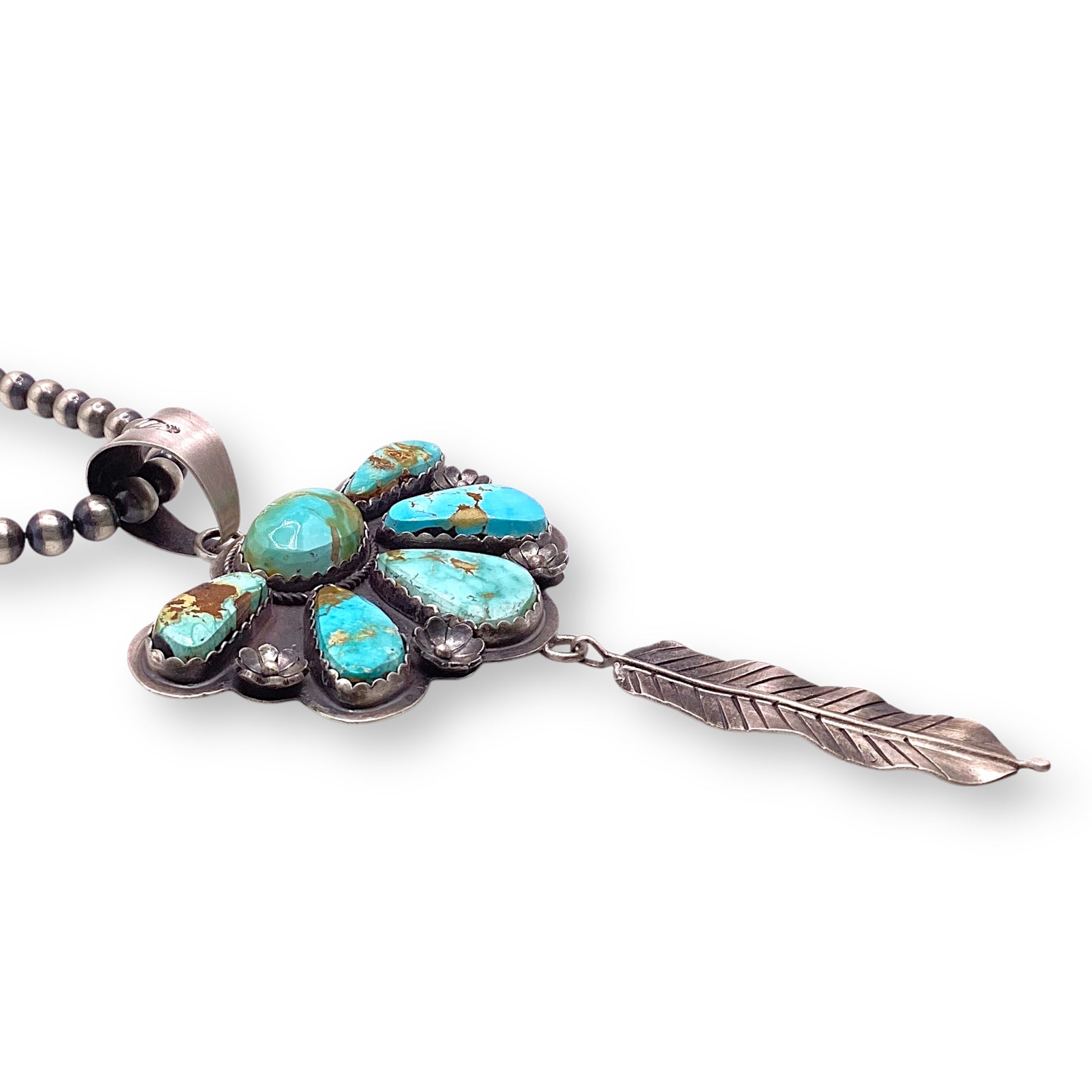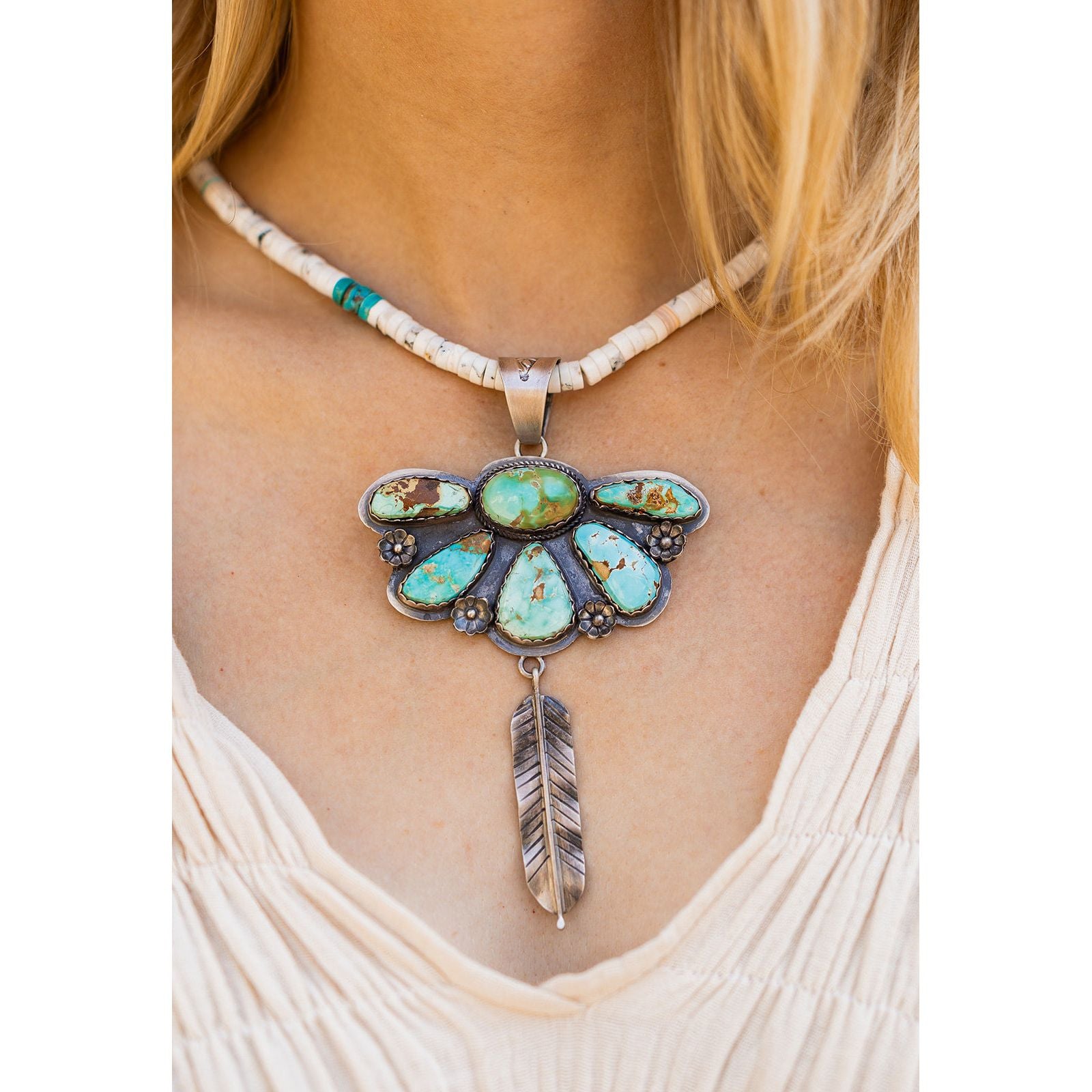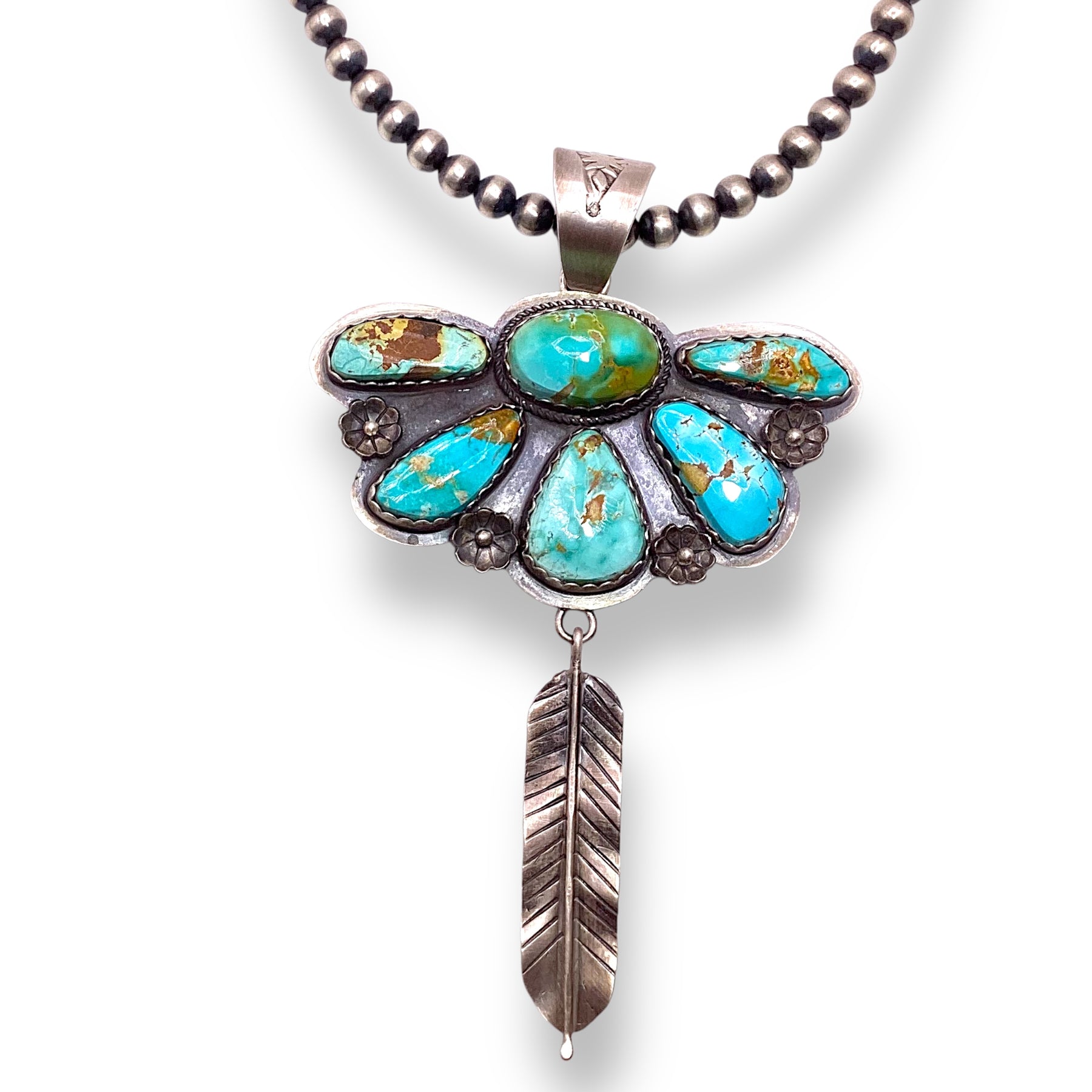 Leigha Cleveland Royston Turquoise and Feather Pendant | Sterling Silver Navajo Made