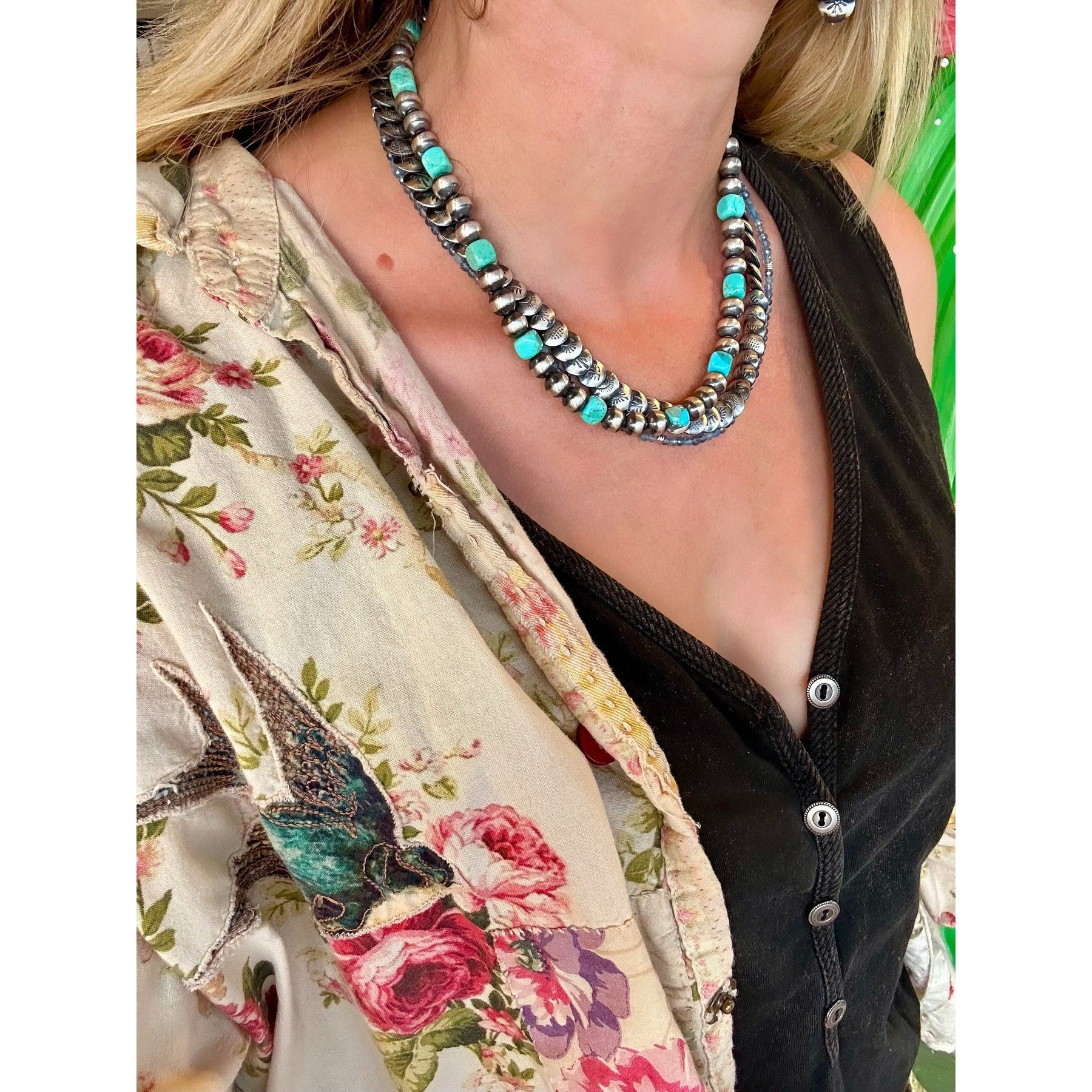 Old Taos Navajo Pearl Square Necklace Sterling Silver