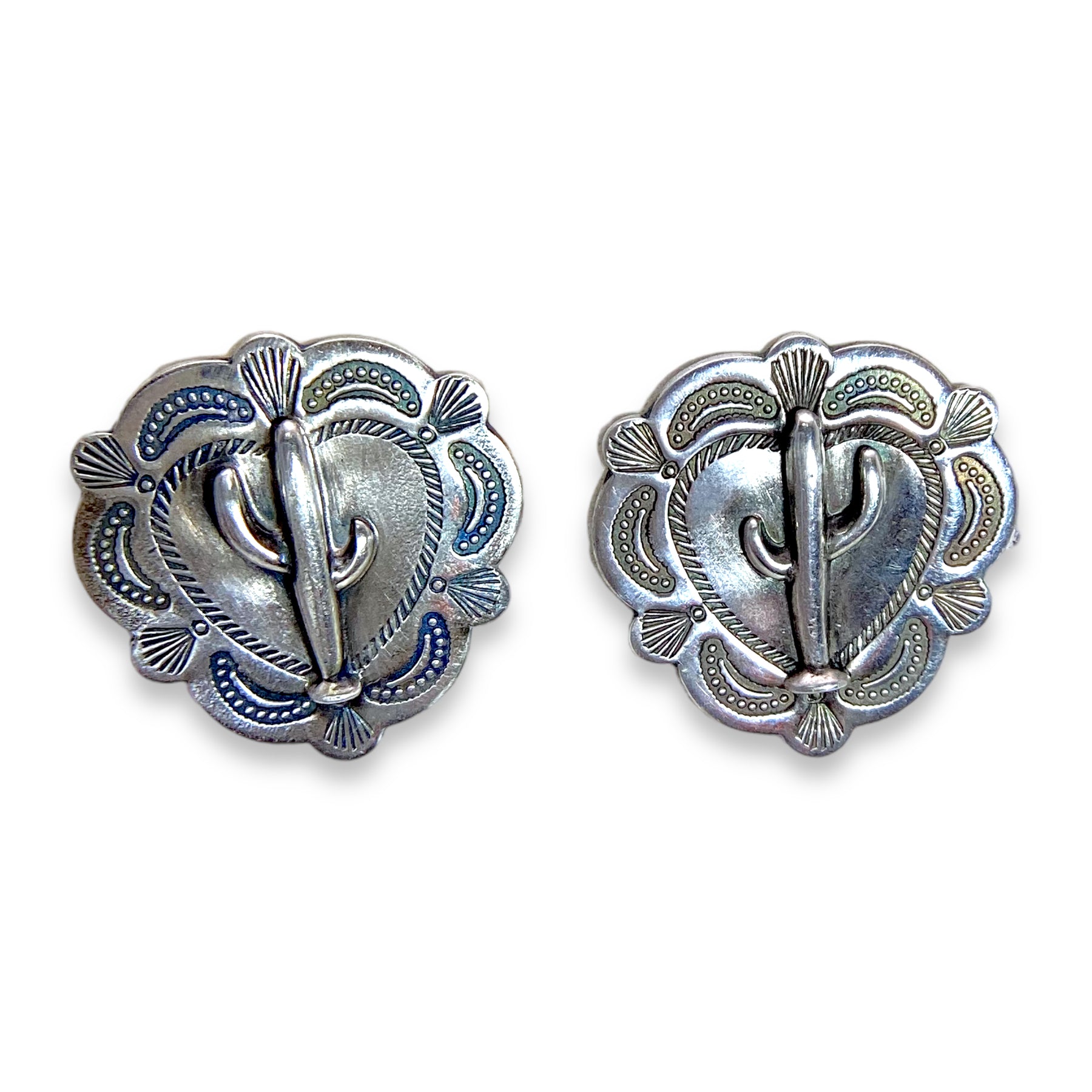 Sterling Silver Framed Cactus Stud Earrings Southewestern by Ristra Ranch