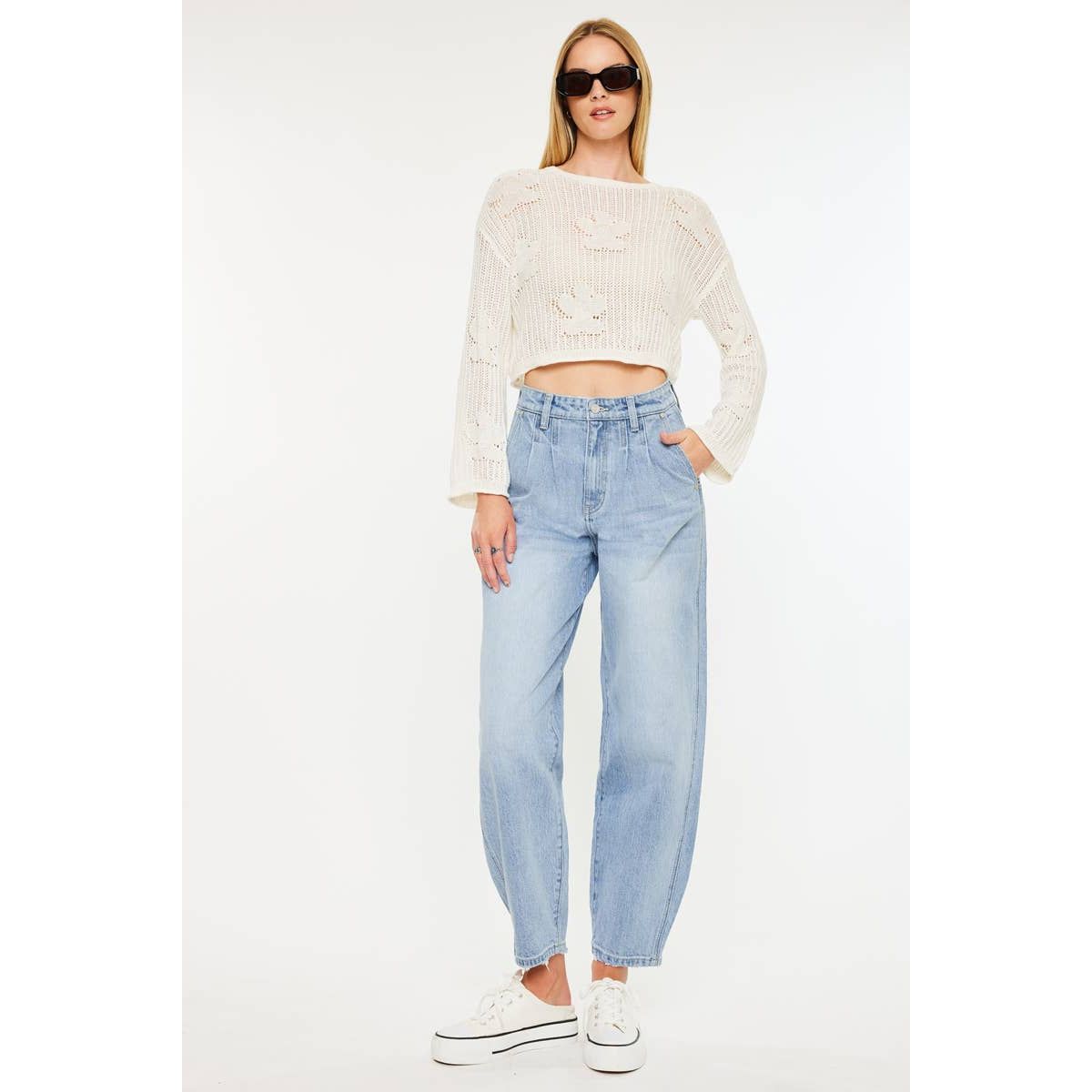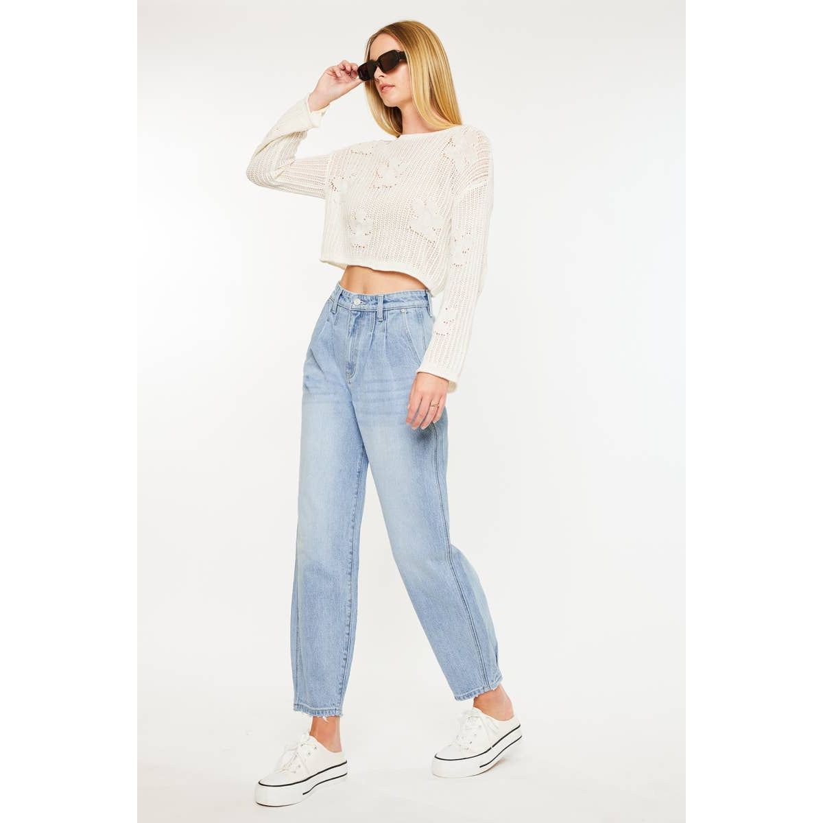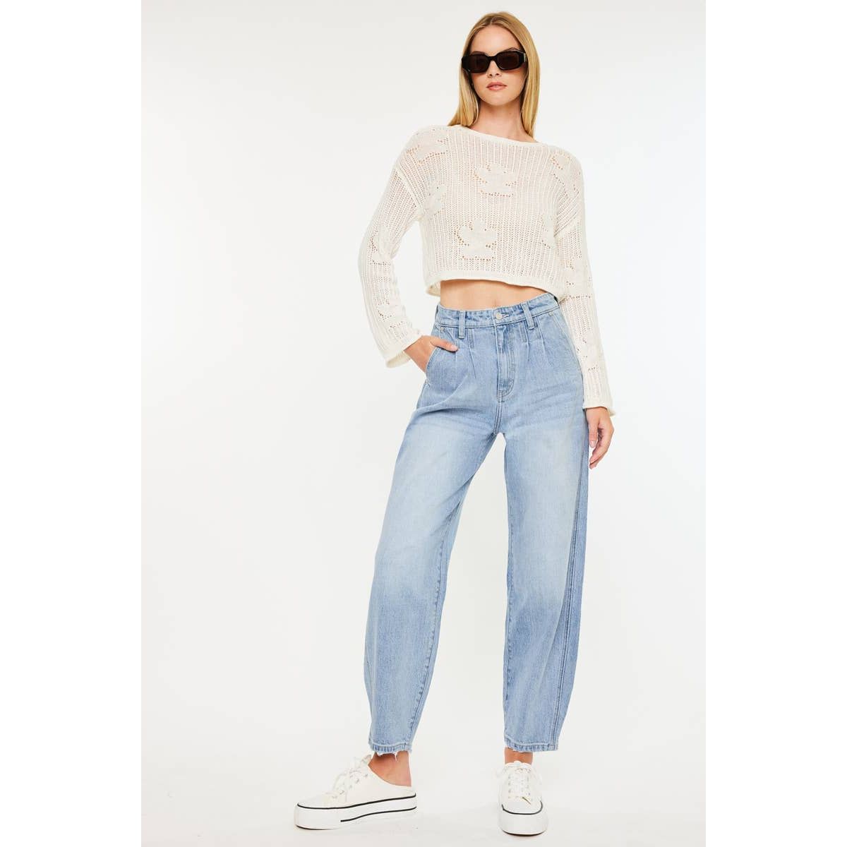 ULTRA HIGH RISE WIDE TAPERED FIT JEANS-KC9412L: LIGHT / 5/26