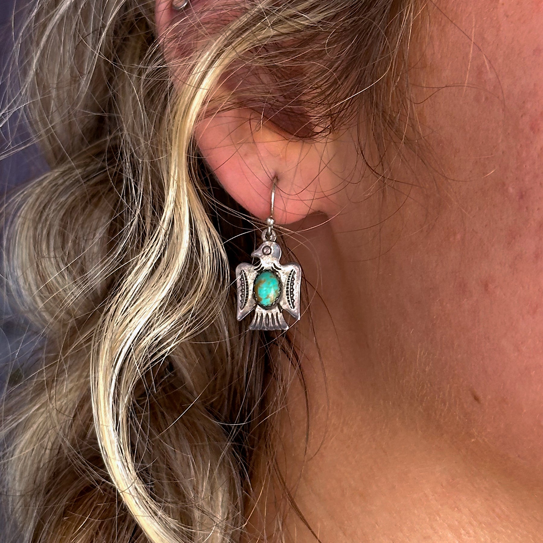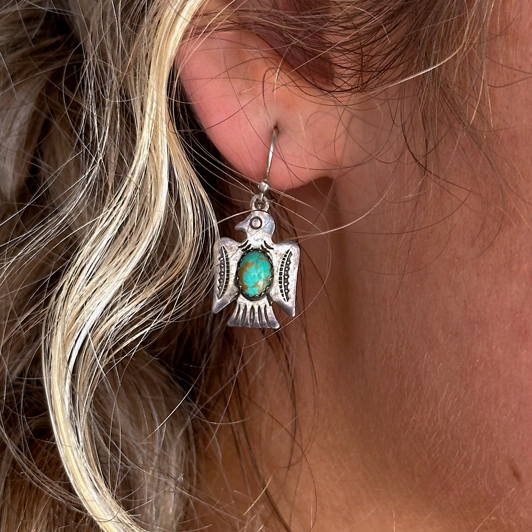 *Beautiful Thunderbird sterling silver turquoise cabochon earrings are always a win. Playful and a beautiful wear, we love these beauties!