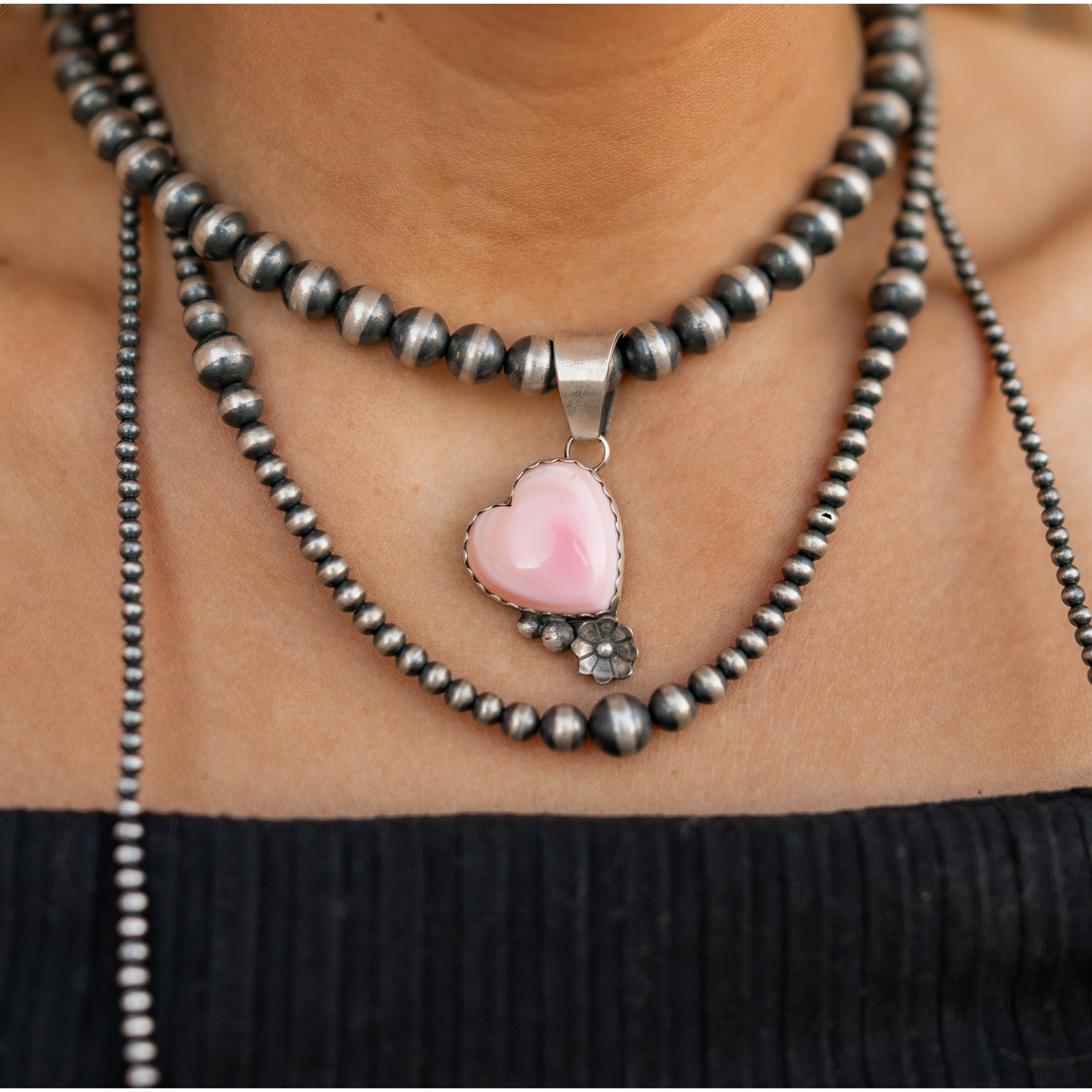 Natural Conch Heart Pendant! Wanting to be different we designed this heart to be different. Collaboration with Leigha Cleveland AMAZING silversmith, we designed this puffy Native Made heart to really stand apart and be a unique piece for you or a loved one!