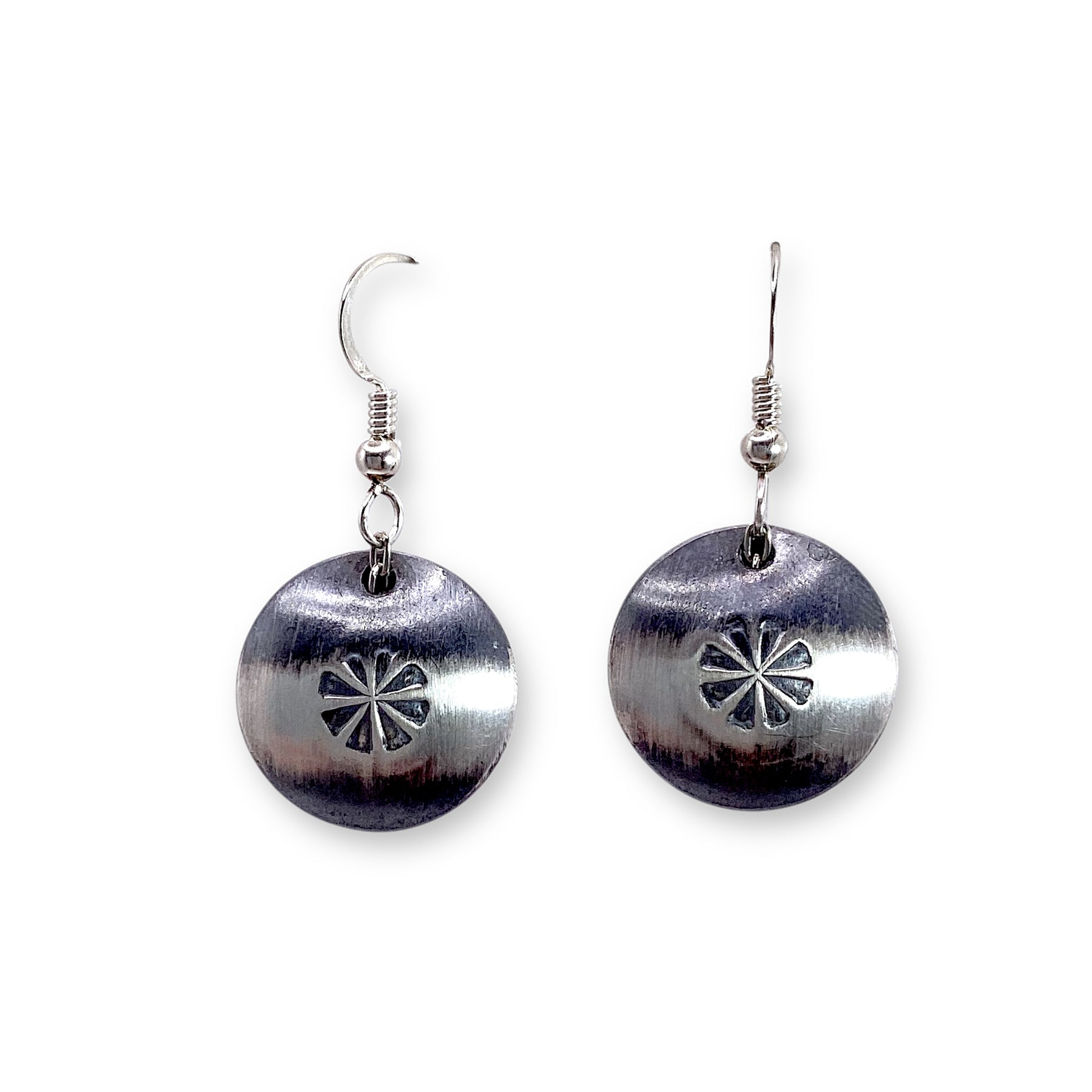 Flower Stamped Pillow Top Pearl Sterling Silver Earrings Maryetta Daukei