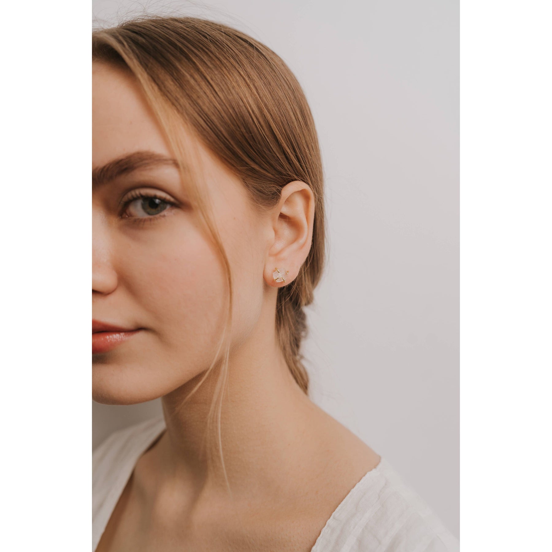 Gemstone Prong - Clear Quartz - Gold Earrings