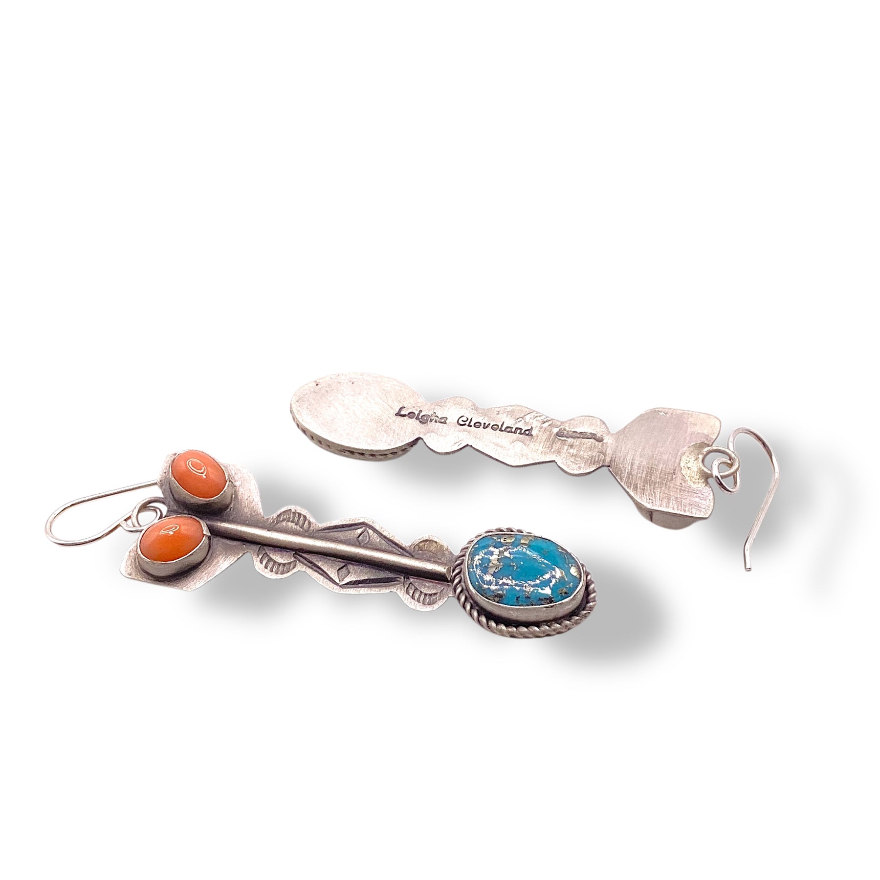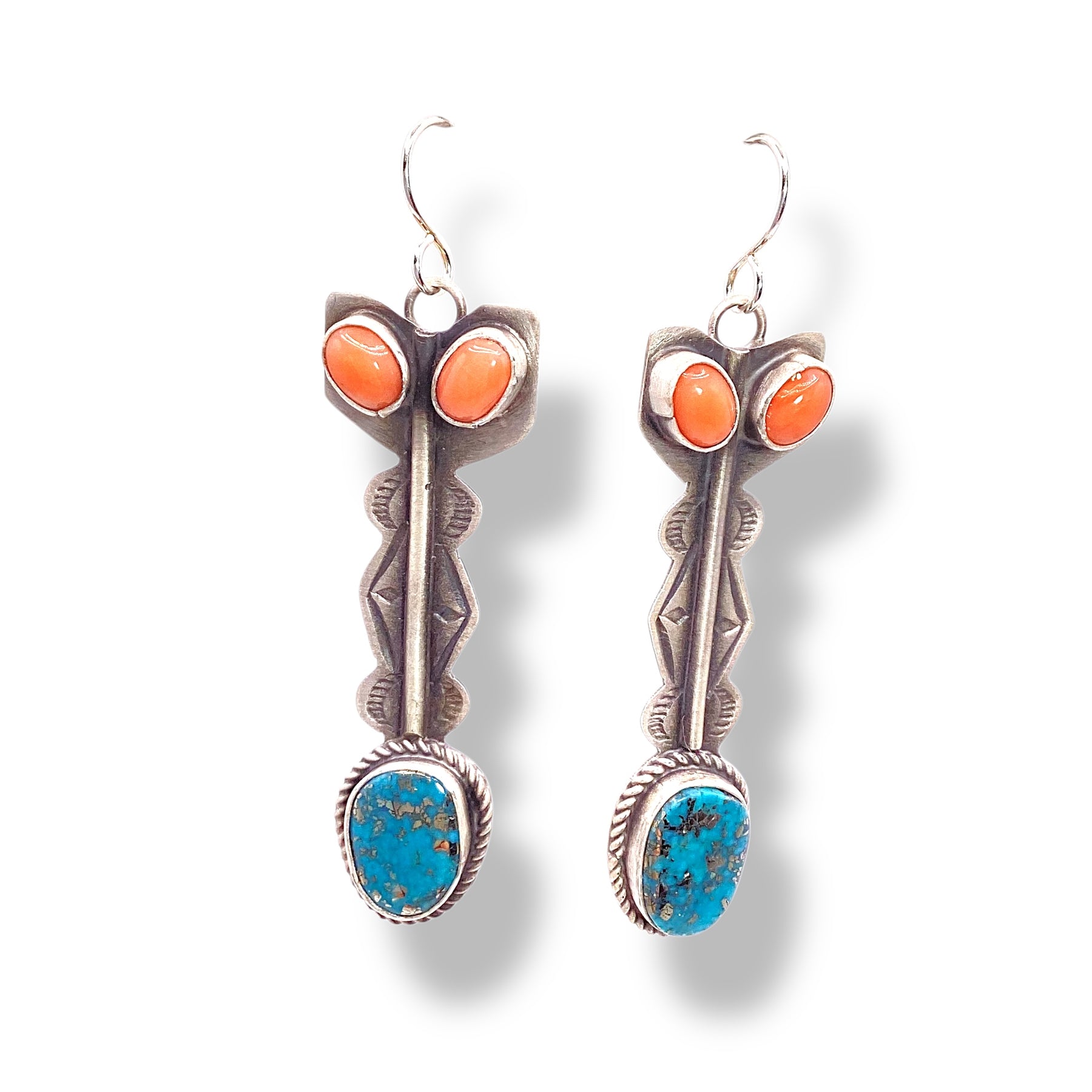 Leigha Cleveland Strait Arrow Morenci Turquoise and Pink Coral Earrings