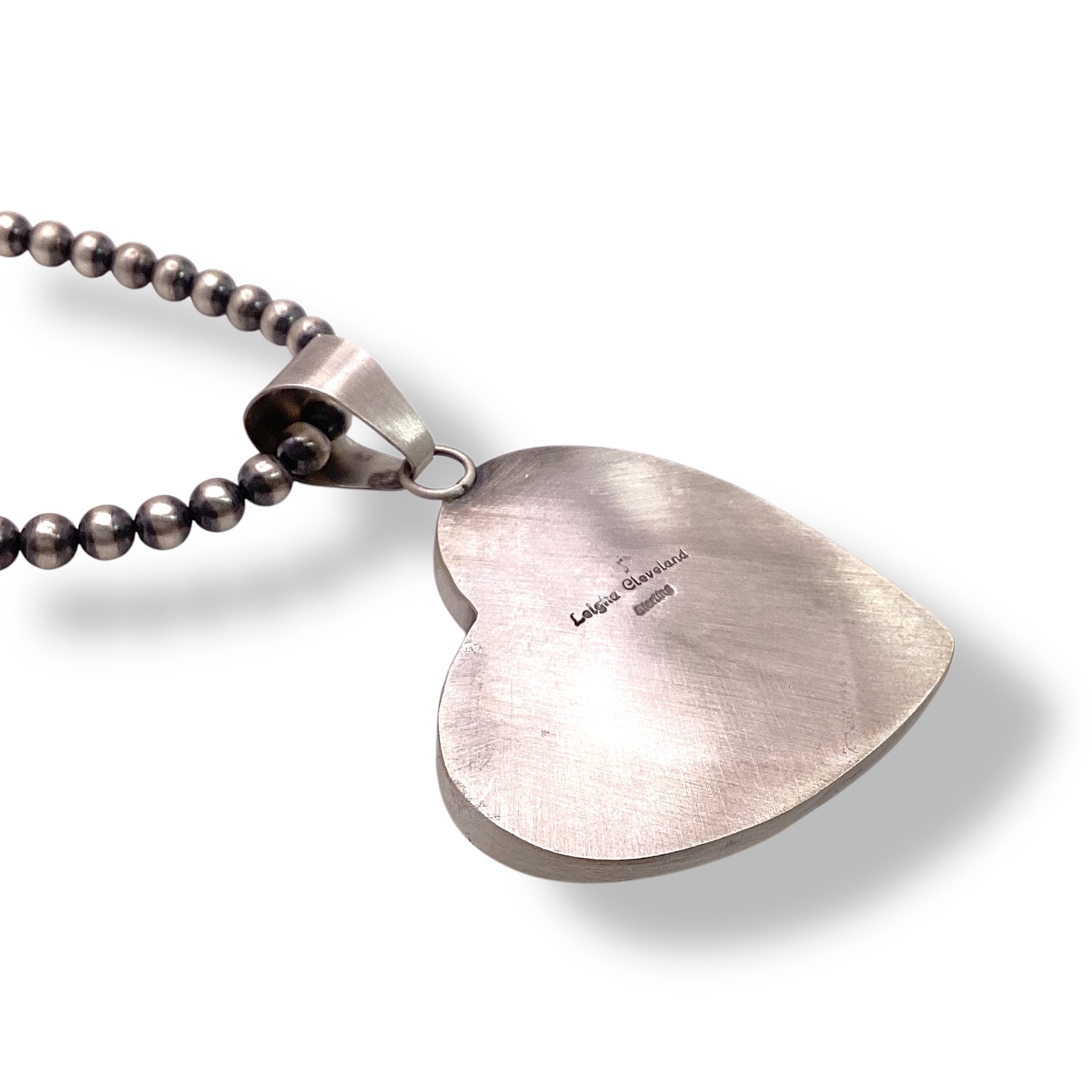 Our Giant heart in purple is timepiece we are loving. This newest design 'Mujeres' by Leigha Cleveland is set in a smooth silver bezel with handmade bail. Cut from a purple Spiny Oyster shell it's hard to find a heart this big.