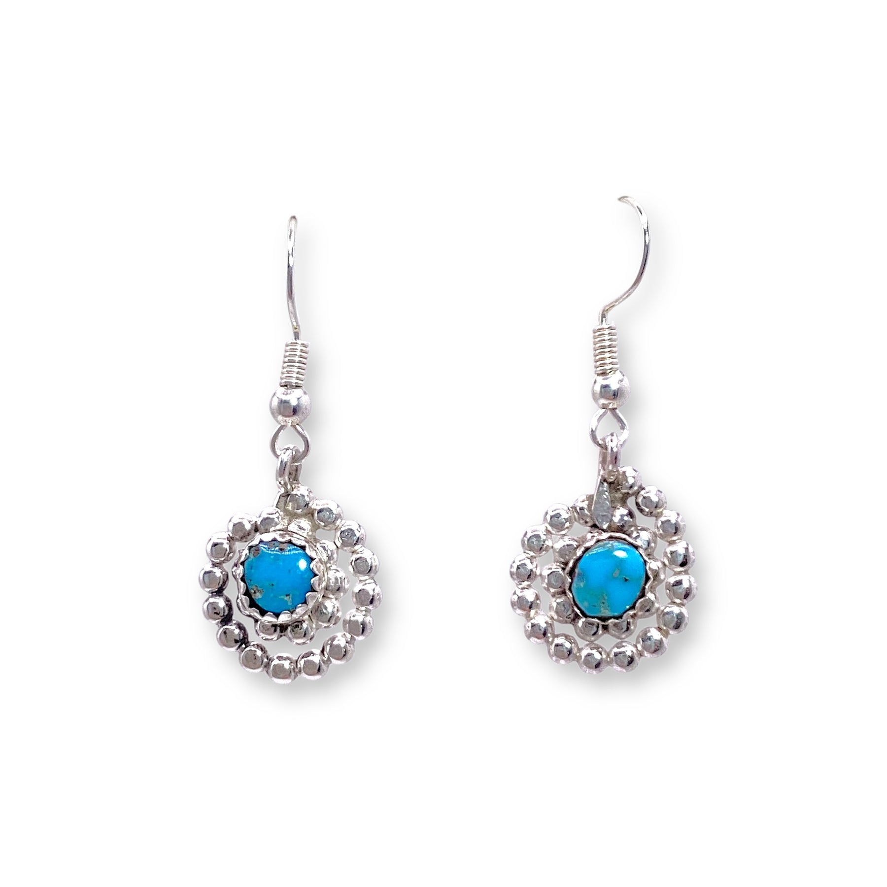 High grade Villa Grove turquoise (a Colorado turquoise) mined and made by Randy Christensen. This are stunning on and the simplest little everyday wear earrings.