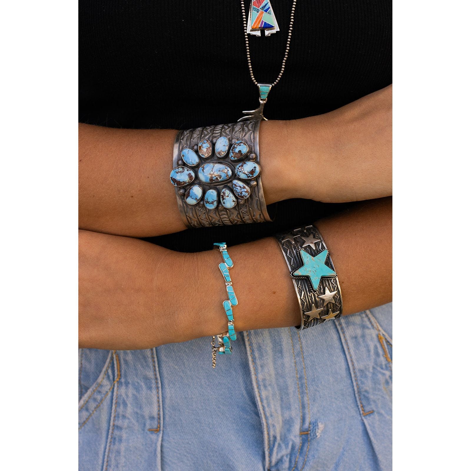 Golden Hills Turquoise Blossom Sterling Silver Statement Bracelet