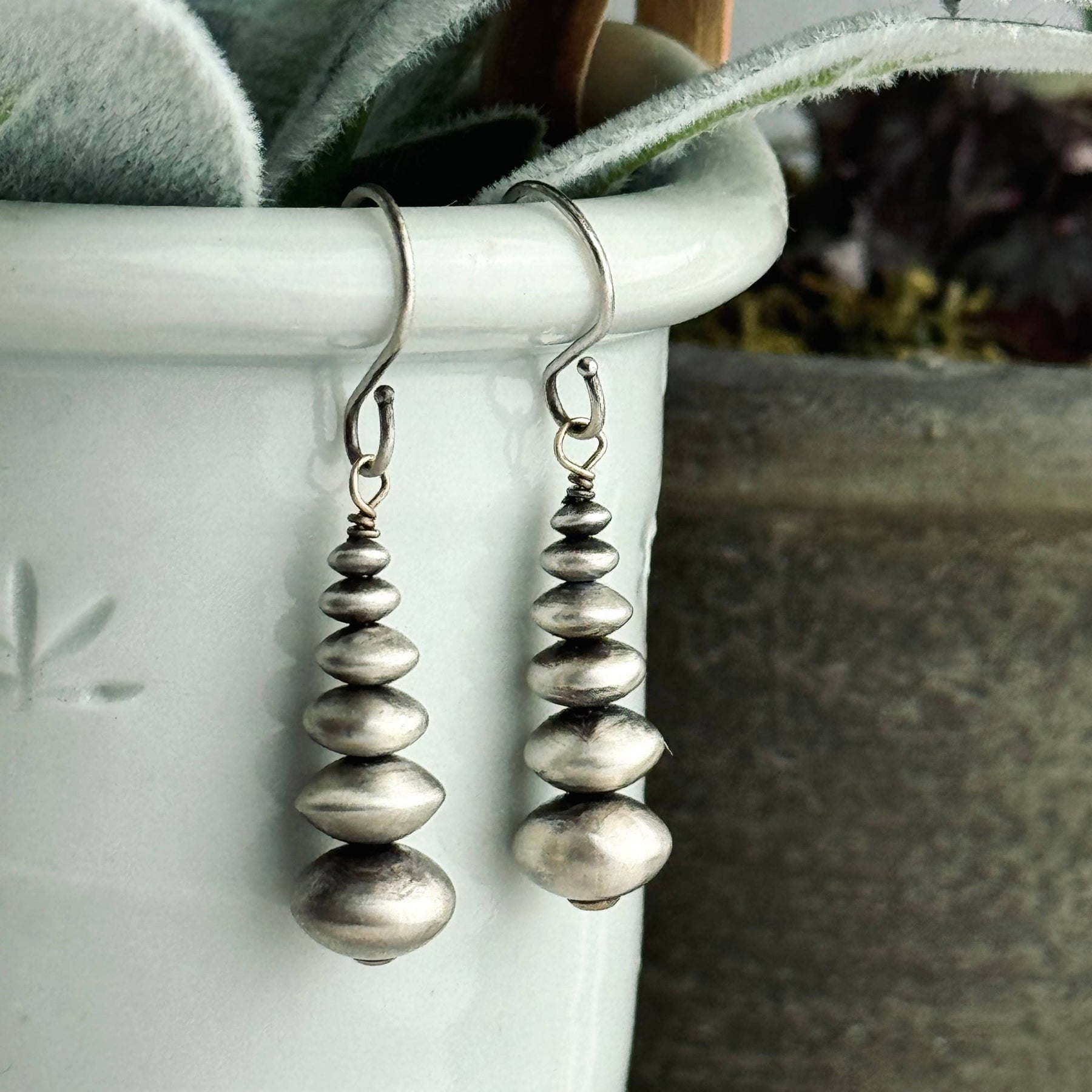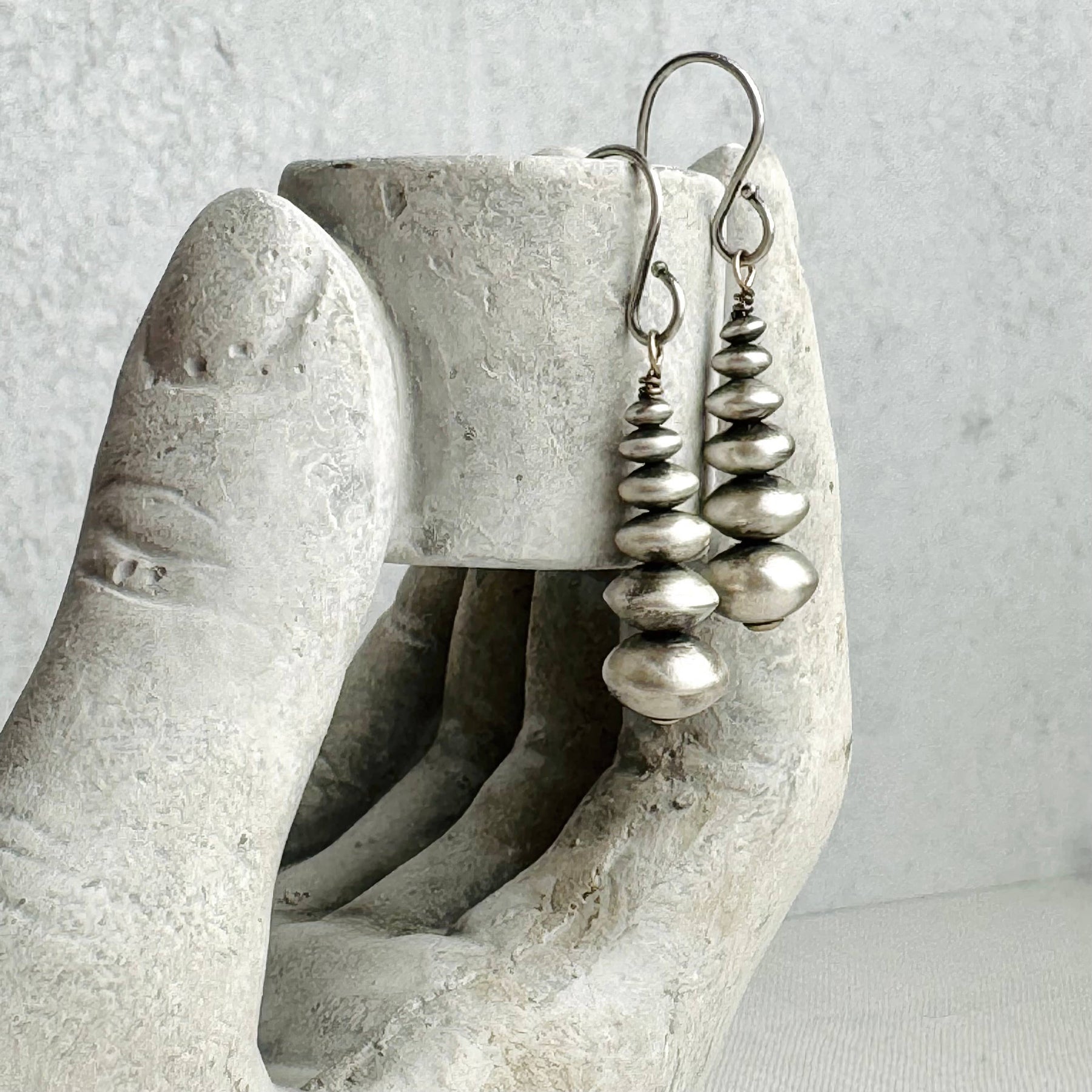 Sterling Silver Cairn Earrings 1.25” Navajo Pearls