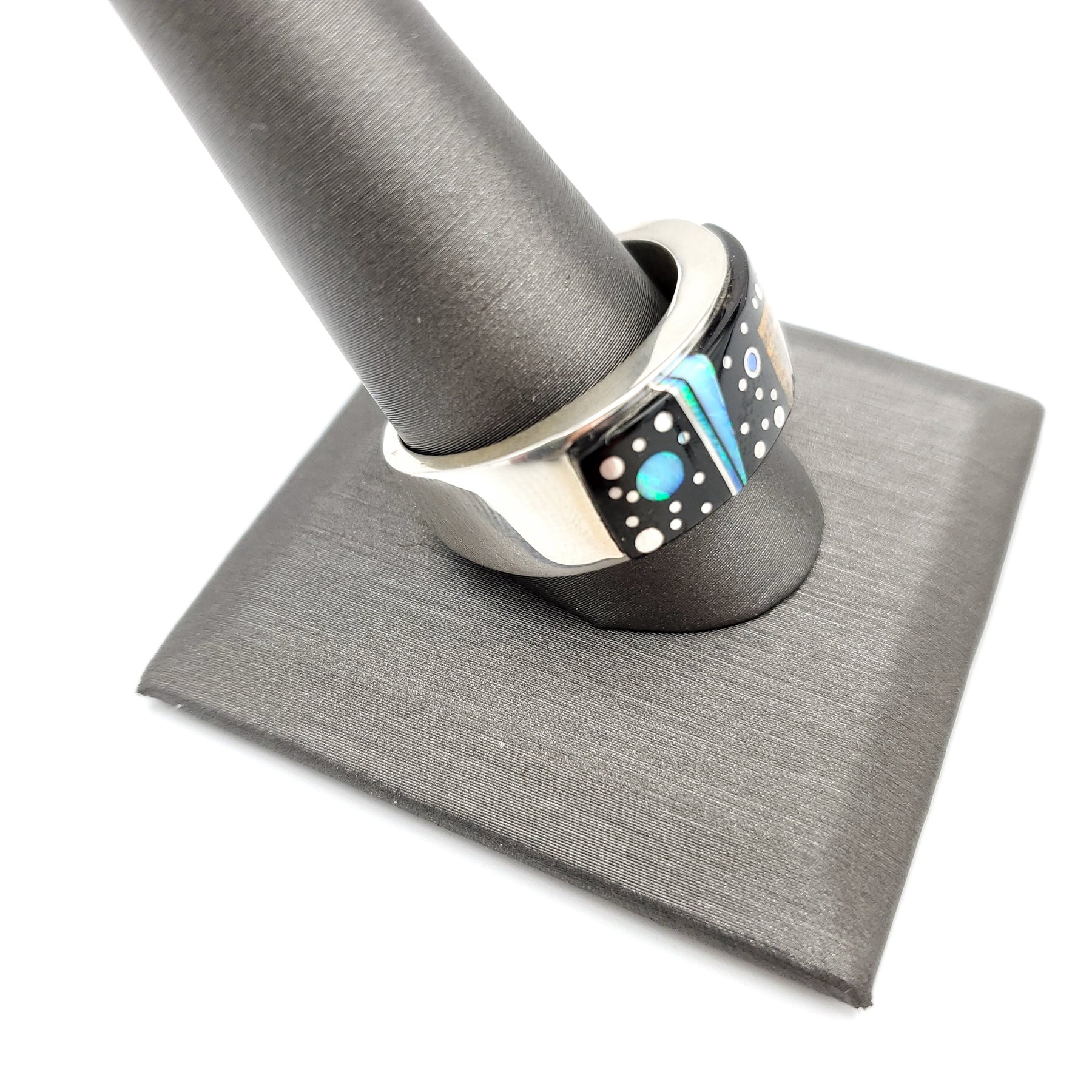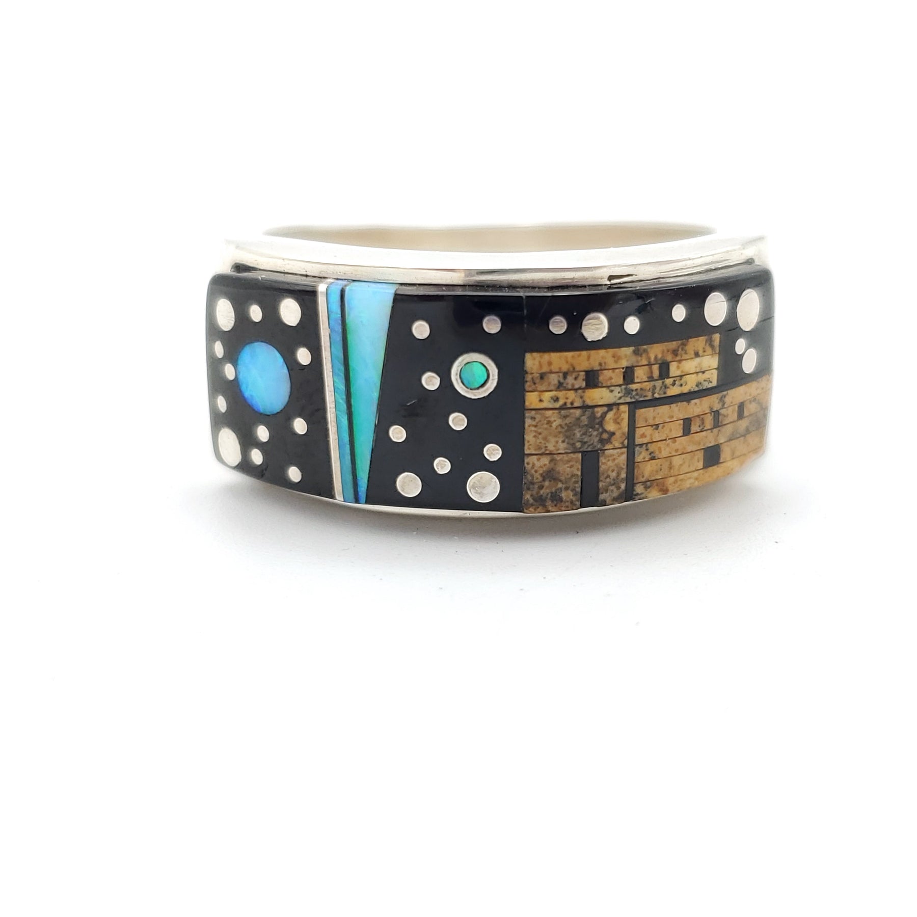 Calvin Begay Pueblo Night Landscape Ring, size 11.75