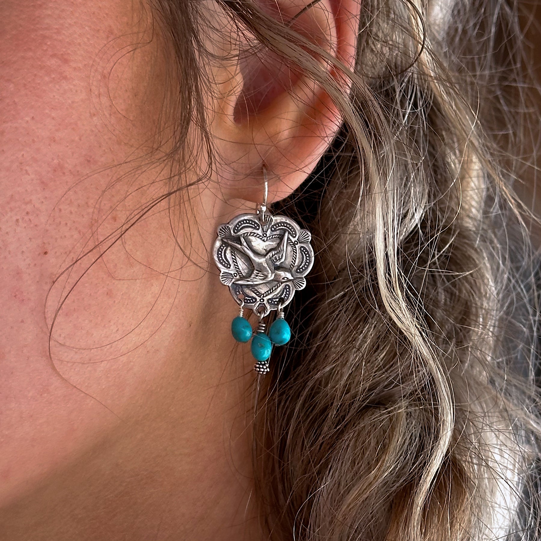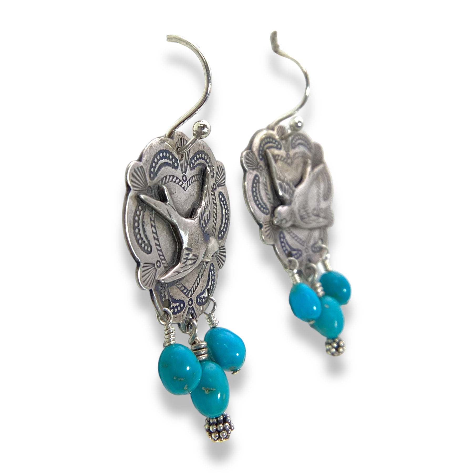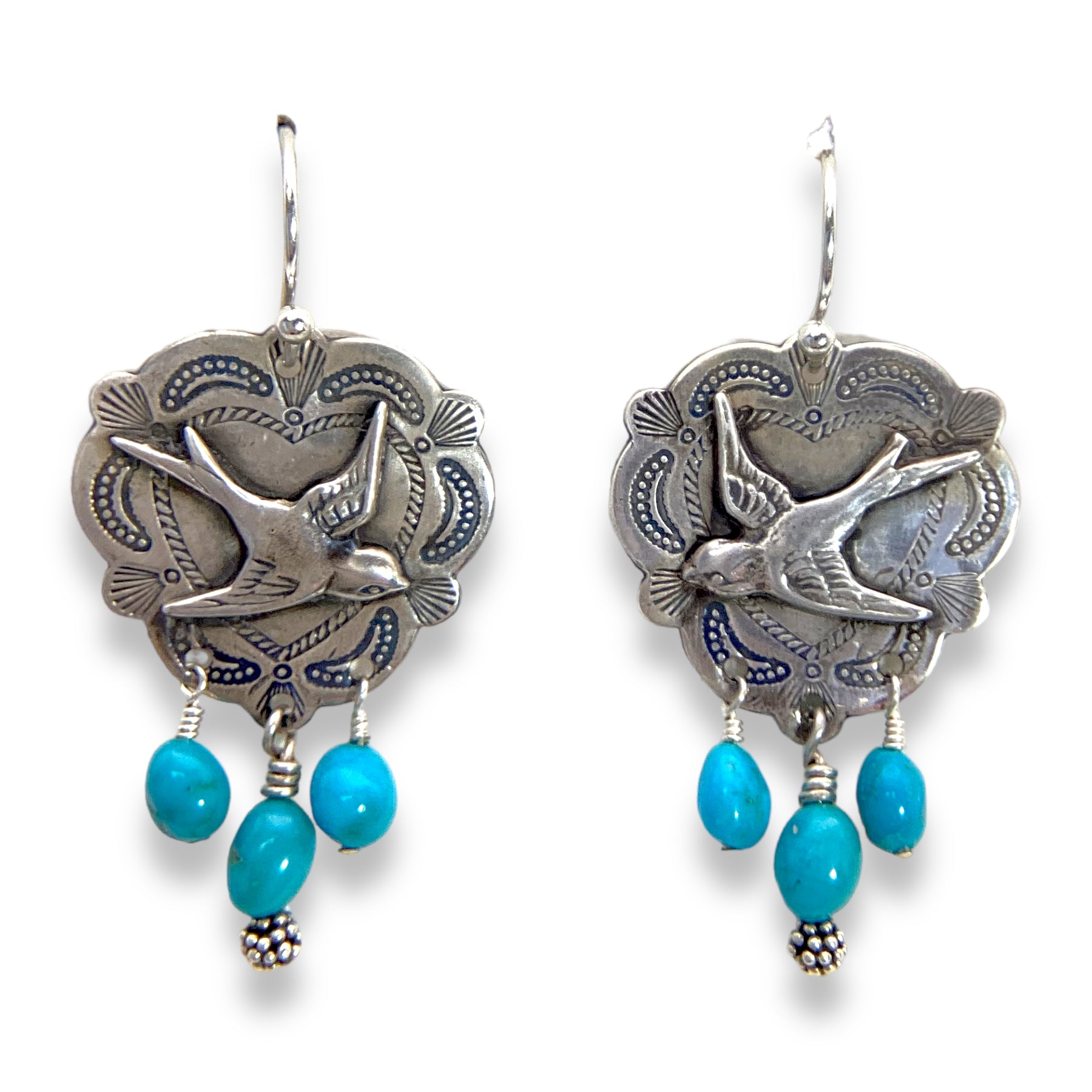 Turquoise Dangle Swallow Earrings Southwestern by Vanessa Waltz