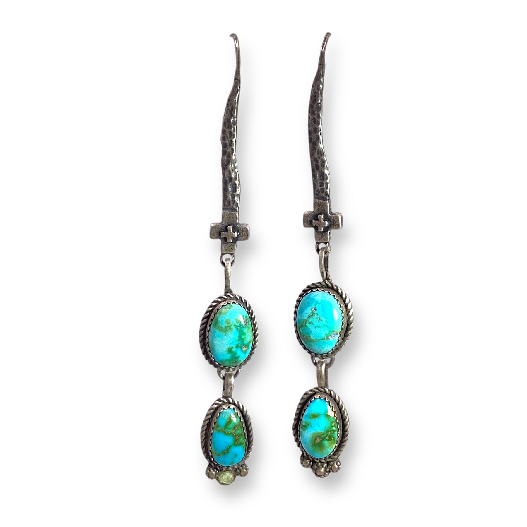*AS IS These vintage Chatfields turquoise earrings are the kind that float—long, elegant, and beautifully serene. Rich turquoise stones nestle in classic sterling silver, with each graceful drop moving gently like a soft desert breeze. Refined and timeless, they carry the quiet, storied charm of Southwest jewelry without ever feeling heavy.