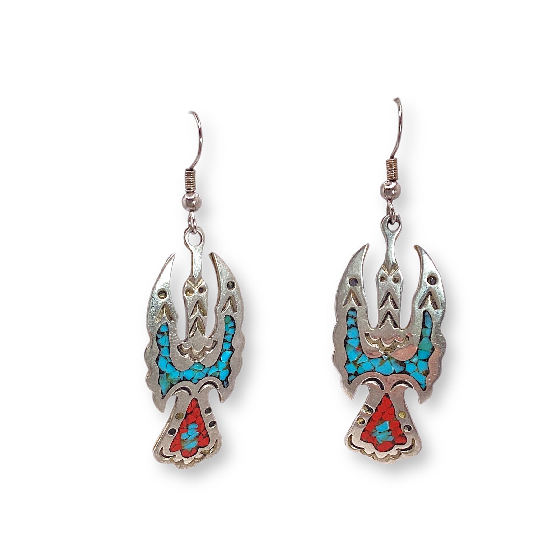 Peyote bird (water fowl) turquoise inlay Zuni earrings. Wear with your boho favorites.
