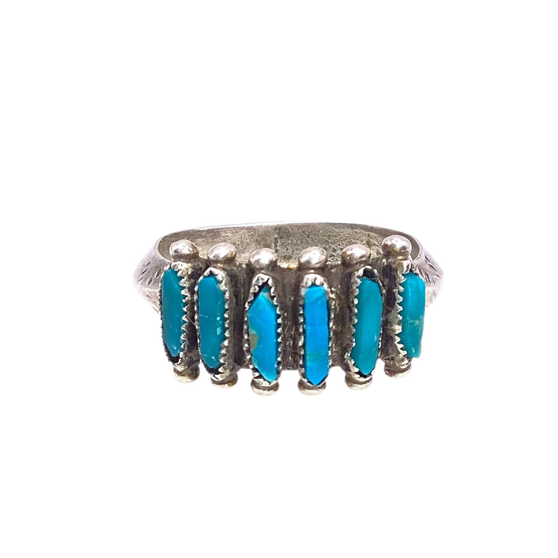 Vintage Zuni Turquoise Petite Squash Blossom Sterling Silver Native Made