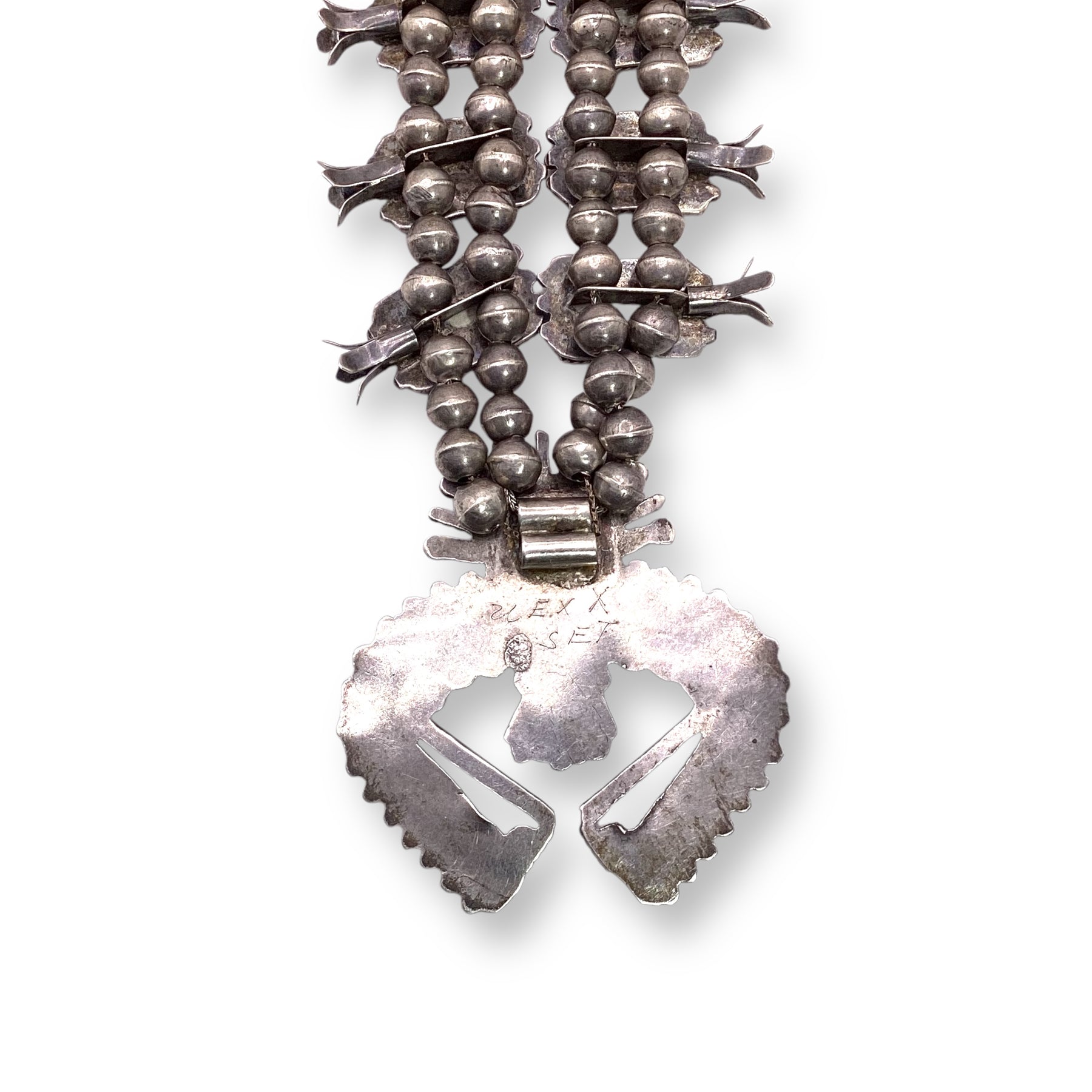 old vintage Native American squash blossoms and navajo pearls with heishi bead necklace