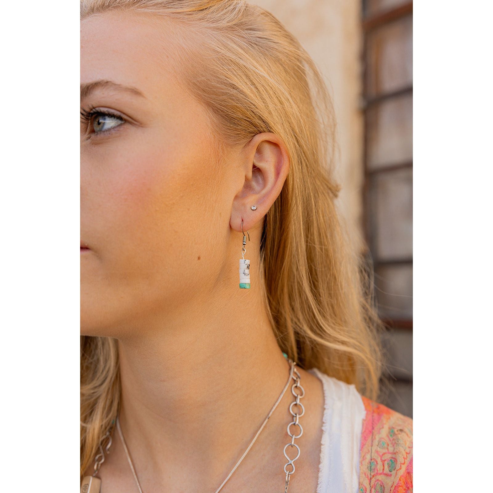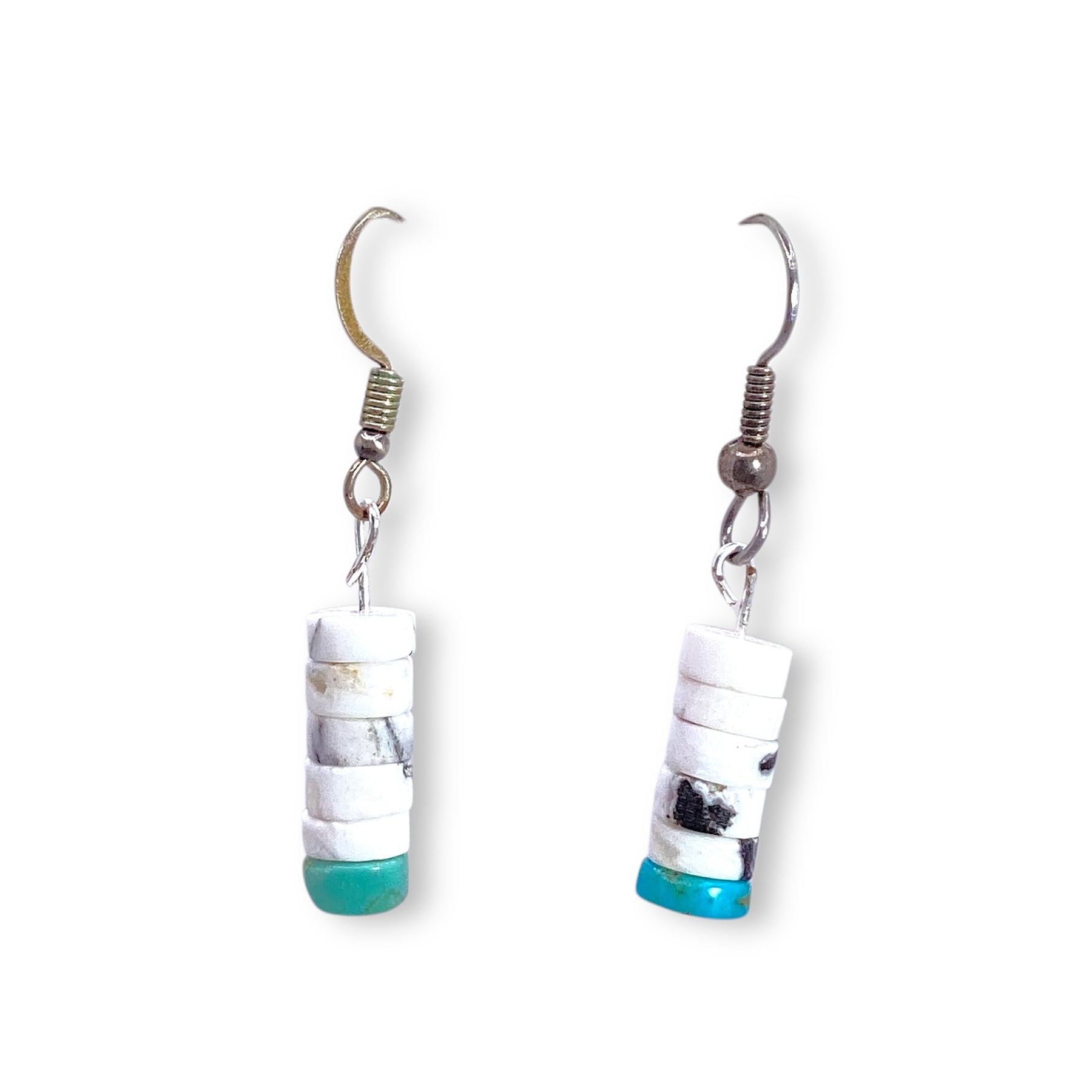 White Buffalo Pencil Earrings Sterling Silver with Turquoise